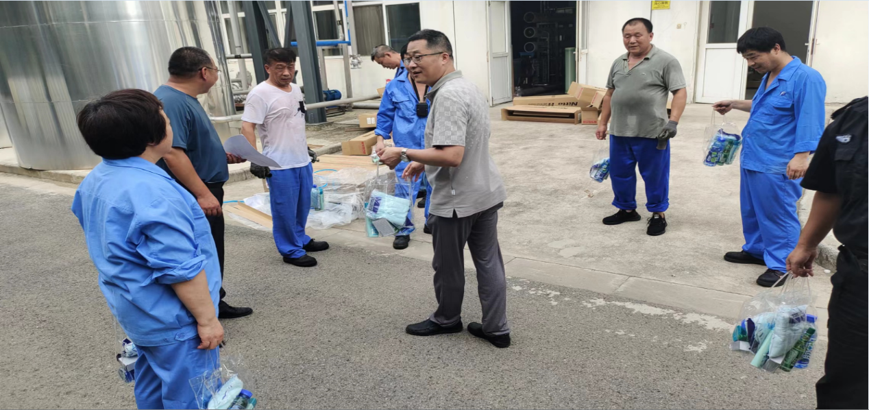 公司為高溫崗位員工精心準(zhǔn)備了防暑降溫用品,讓每一名員工感受到了公司的關(guān)懷,從而激發(fā)出更大的工作熱情。