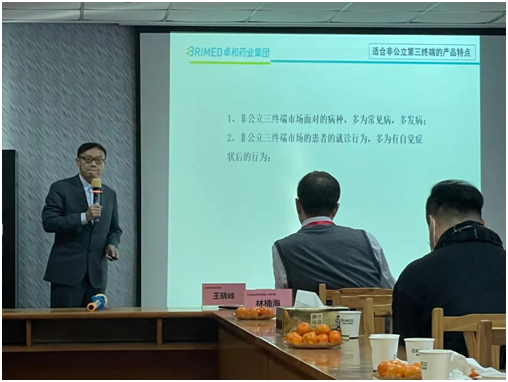 我集團(tuán)公司副總經(jīng)理詹鵬盛先生代表卓和藥業(yè)集團(tuán)對(duì)中睿醫(yī)藥商學(xué)院華東班學(xué)員的到來表示熱烈歡迎,并為參訪學(xué)員分享我公司第三終端市場(chǎng)開發(fā)經(jīng)驗(yàn),拓寬第三終端市場(chǎng)營(yíng)銷新思維。幫助學(xué)員把學(xué)習(xí)交流成果轉(zhuǎn)到工作實(shí)踐中去。