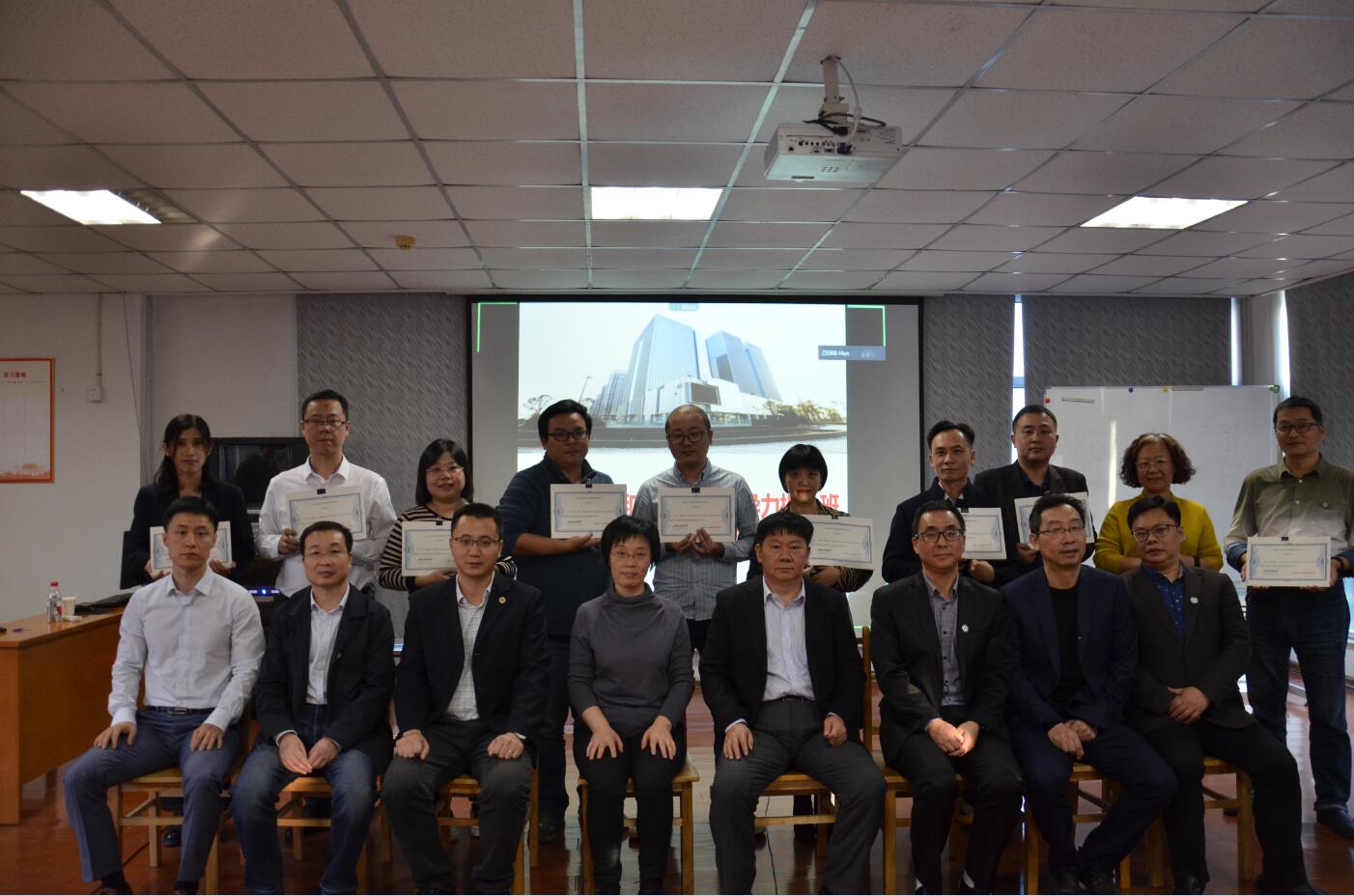 結業(yè)典禮接近尾聲,集團領導、江大老師和集團管理干部一起合影留念。